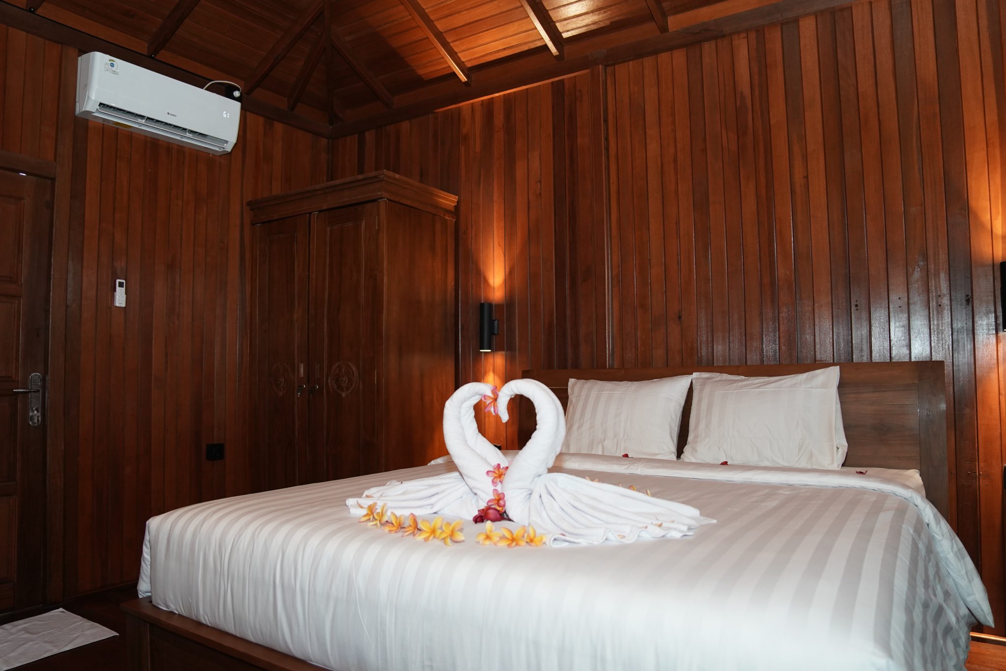 Experience the charm of traditional wooden design with the comfort of modern living. Each of our 20 private units offers air-conditioning, Wi-Fi, and a smart TV—creating a warm, peaceful, and homey space for solo travelers, couples, or families.